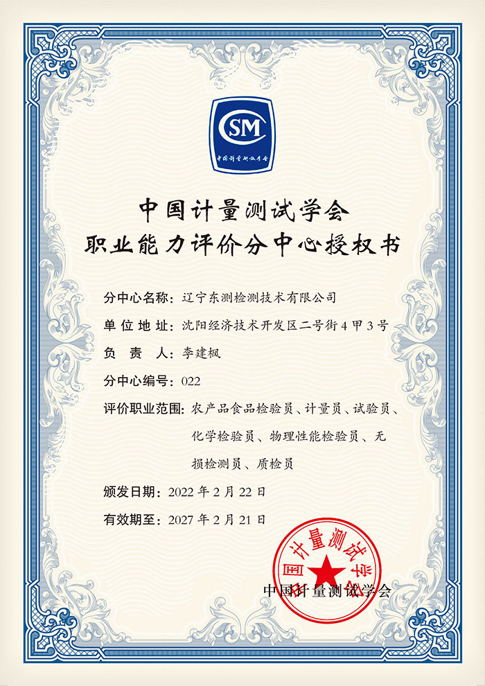 中國計量測試學會職業(yè)能力評價分中心授權(quán)書